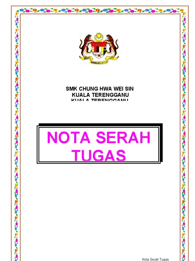 Contoh nota serah tugas ini adalah format yang sesuai sama ada untuk guru atau kakitangan kerajaan lain yang bertukar tempat kerja.